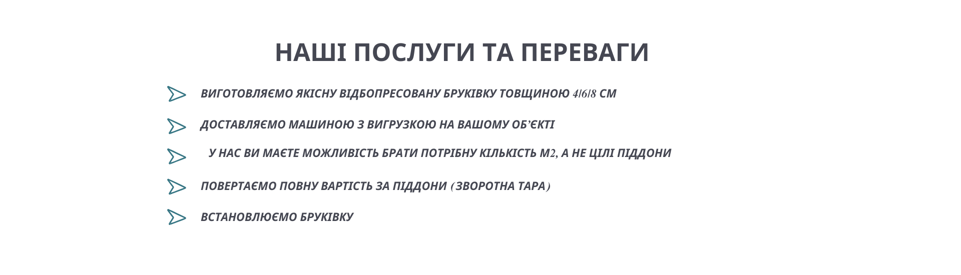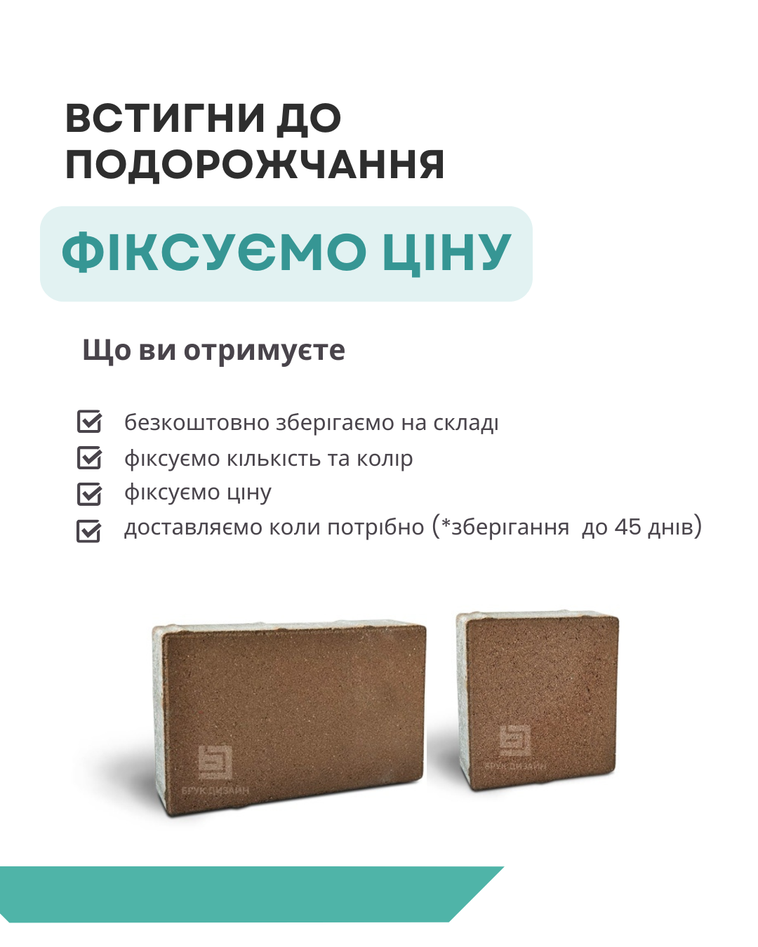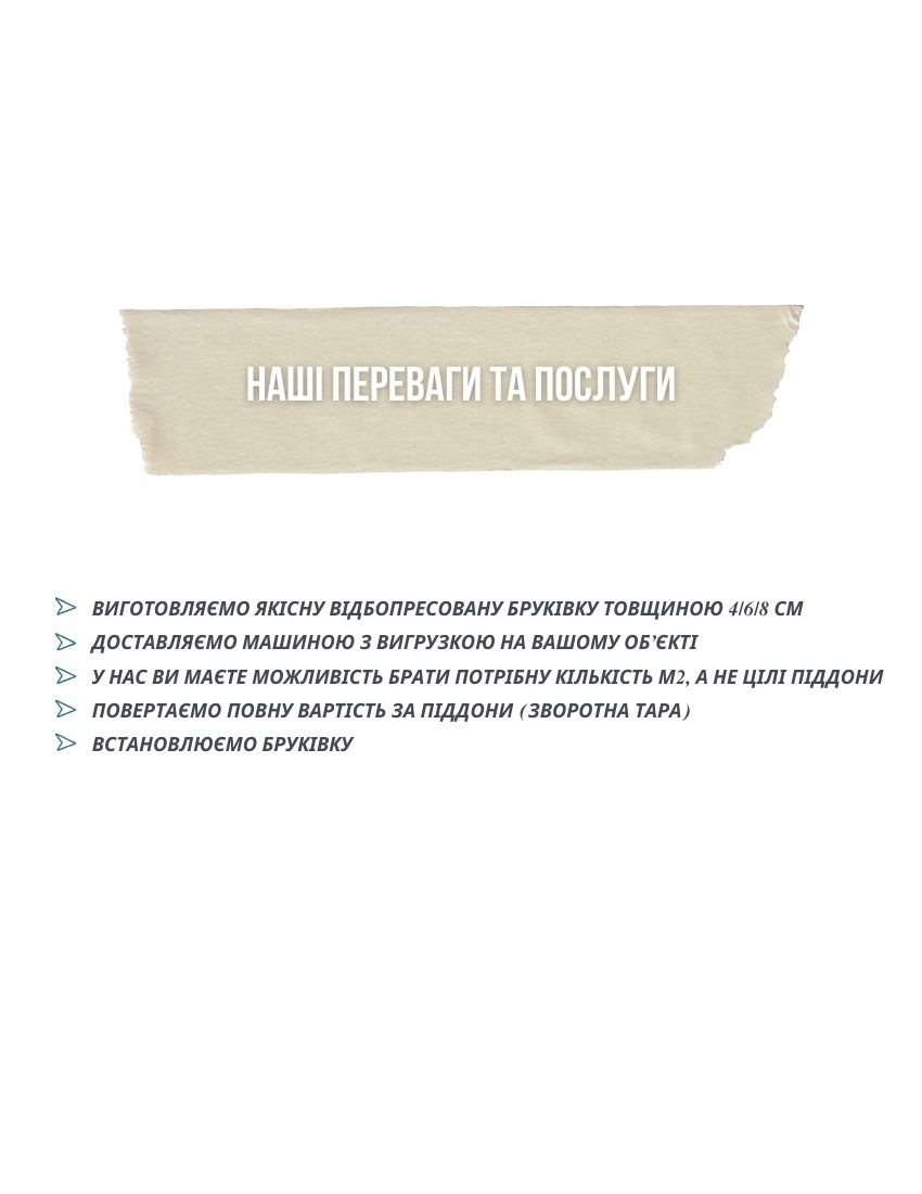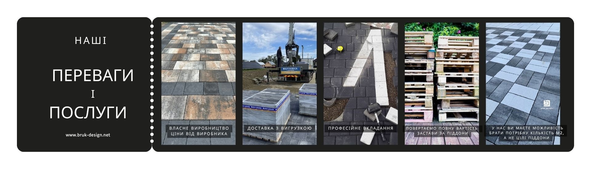 Нам надзвичайно важливо задовольнити очікування клієнтів, бути в курсі всього, що відбувається на європейському ринку, тому останні технології, як виробництва, так і контролю якості, є нашим постійним активом. Висока якість продукції – це те що ми сьогодні пропонуємо нашим клієнтам! Естетичний вигляд бруківки дуже важливий, але не менш істотним є експлуатаційні властивості.